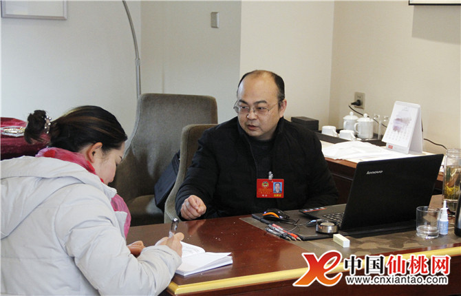 圖為記者采訪市政協(xié)提案法制委員會(huì)主任周濤